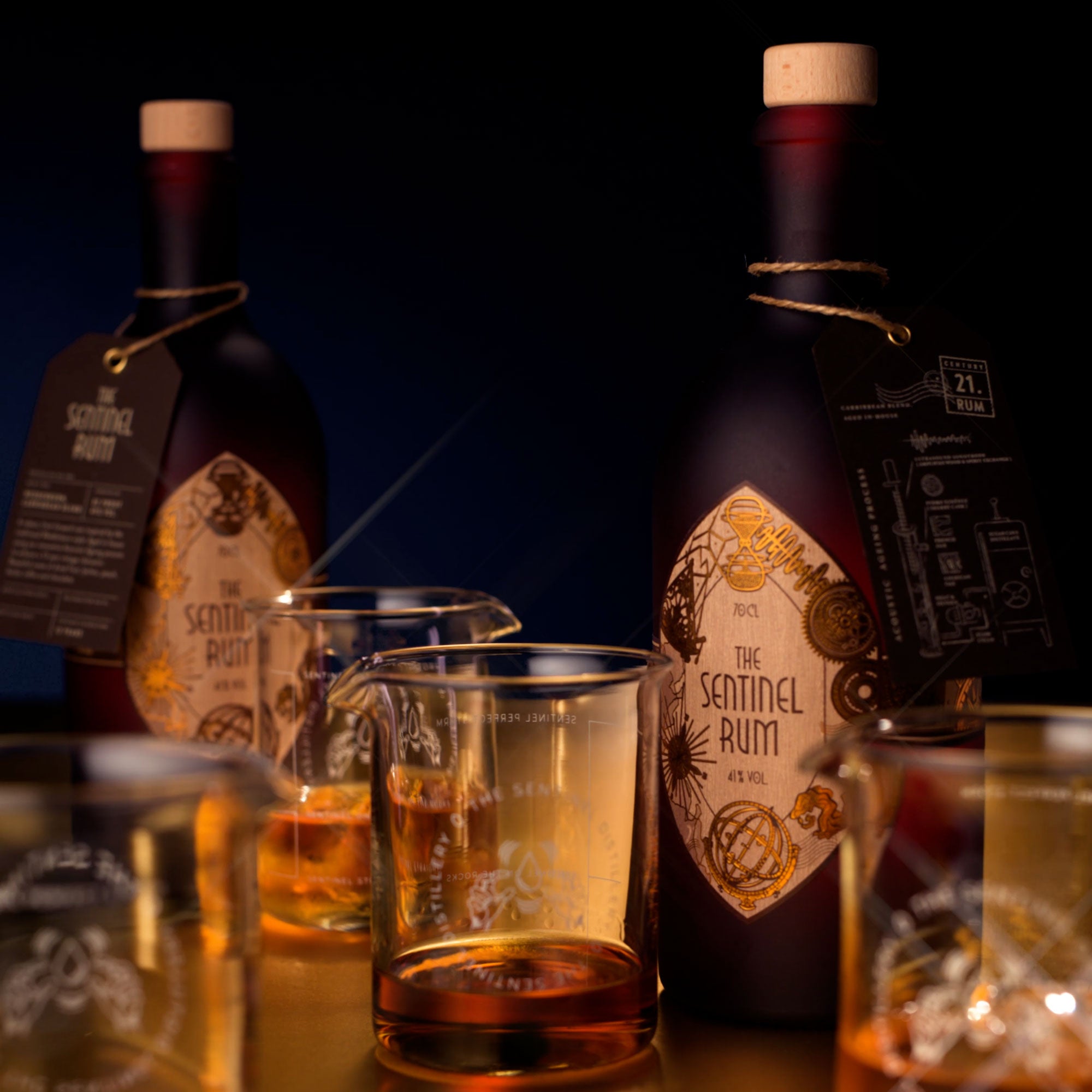 Encased in an dark-red, satin finished bottle adorned with nautical, time-traveling motifs, the Sentinel honours rum’s storied maritime past while charting a course toward its future. A guardian of tradition, reimagined for the modern rum lover.